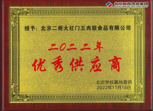 目前,北京二商肉食集团已完成所有大中小学、幼儿园合作客户的肉类食材配送任务,其中包含猪肉、牛肉、羊肉、肉制品、清真肉制品等全品类肉类食材物资的订单供应。北京二商肉食集团所属北京二商大红门五肉联食品有限公司凭借过硬的产品质量和优秀的服务水平得到众多师生认可,被评选为“2022年度北京学校基地直供平台优秀供应商”。