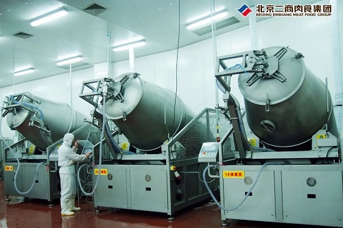 北京二商肉食集团拥有4家肉制品生产加工基地,分布于北京市、河北省衡水市、河南省开封市,主要生产酱卤类、预制菜系列、熏煮香肠火腿、高温类产品等,共计300余个品种,先后打造了老北京蒜肠、香卤猪头肉、松仁肉肚等一批备受消费者青睐的产品。同时,肉制品板块积极把握消费趋势,开发了猪肚鸡、酸菜鱼、腐乳红烧肉等10余款预制菜系列产品。