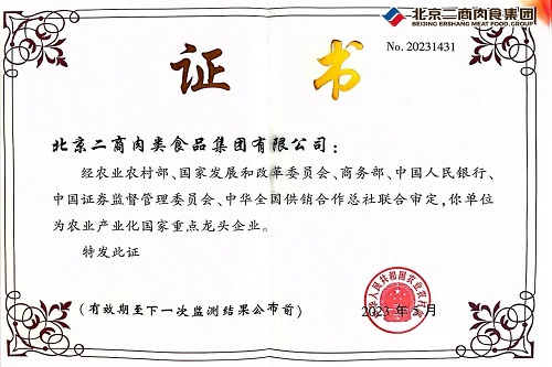 北京二商肉食集团拥有“月盛斋”中华老字号品牌,“大红门”北京老字号品牌以及“穆香源”“摩奇”“红门小厨”等行业知名品牌。北京老字号“大红门”以155.35亿元的品牌价值被评为“中国500最具价值品牌”位列397位;“月盛斋酱烧牛羊肉制作技艺”被国务院、文化部列入“国家级非物质文化遗产”保护名录;北京二商肉食集团连续两年入选“中国轻工业200强企业”和“中国轻工业食品行业50强企业”榜单,并于2023年被认定为农业产业化国家重点龙头企业。