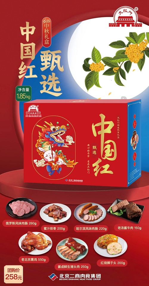 2023年中秋佳节即将来临,北京二商肉食集团“大红门”特推出四款“中秋”礼盒,新颖时尚的包装,好吃到爆的产品,总有一款适合您,速来订购吧!