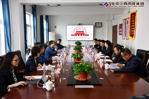 公司总经理孙铁新围绕企业六大板块经营实际向光明食品国际来访领导简要介绍了北京二商肉食集团的基本情况。他表示,受国际市场、人口结构、消费理念等大环境因素影响,肉类市场消费恢复缓慢,肉食企业正在面临着严峻挑战,行业压力较大。希望通过此次交流,双方能够强化沟通及信息共享,抱团取暖应对市场困局,相互帮扶平稳度过肉食行业的寒冬。另一方面,双方可以围绕当下影响企业发展的关键问题,深化沟通交流,推动双方在更多领域、更深层次的业务合作,实现互利共赢的合作目标。