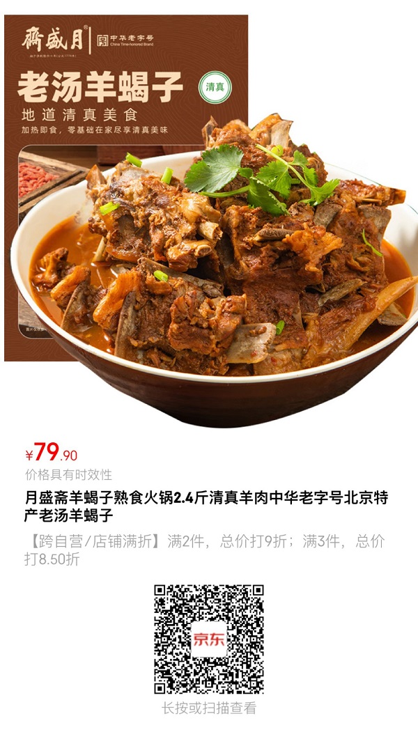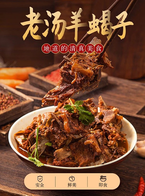天气逐渐转凉,有什么食物能击垮寒冷,点燃食欲?羊蝎子应该就是最好的答案了!寒冷的冬季,叫上三五好友,来上一大锅热气腾腾的老汤羊蝎子,色香味俱全,大口吃肉,保证让你欲罢不能。月盛斋老汤羊蝎子,选用内蒙古草原羊肉原料,传统工艺加工而成,方便快捷,不膻不腻,地道的清真美食。
