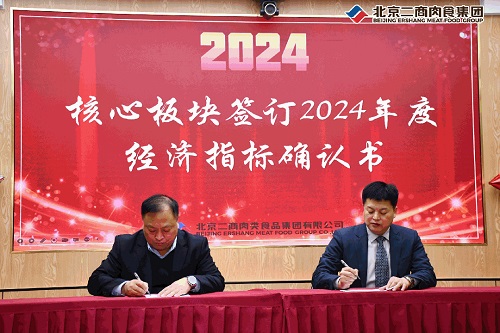 公司总经理孙铁新与各核心板块负责人签订《2024年度经济指标确认书》;与企业代表签订《2024年度食品安全目标责任书》和《2024年度安全工作责任书》。