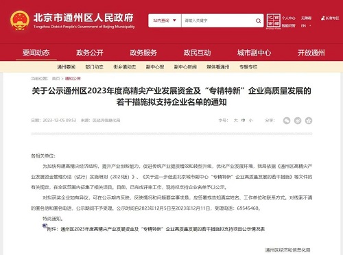 此次荣获高精尖产业发展资金支持,不仅是通州区经济和信息化局对企业经济发展贡献给予的充分认可,也是公司实施全国战略布局、企业综合实力大幅提升的重要体现。