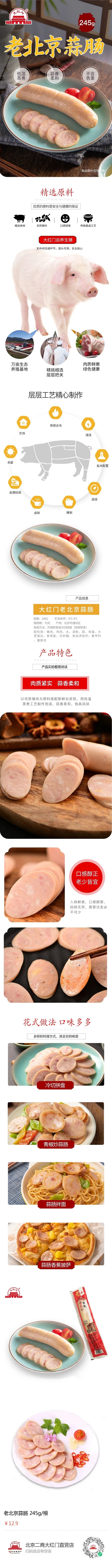 中华老字号“大红门”老北京蒜肠,肉质紧实,独具风味,无论您是冷切拼盘、凉拌、热炒,多种烹饪方式都可以轻松应对,轻轻来上一口,咸淡适中,鲜香可口,浓郁的蒜香味,口感超级丰富,保证让您回味无穷。