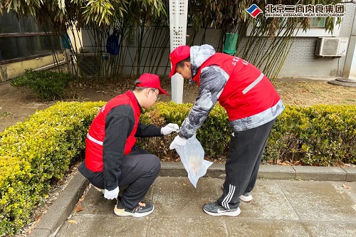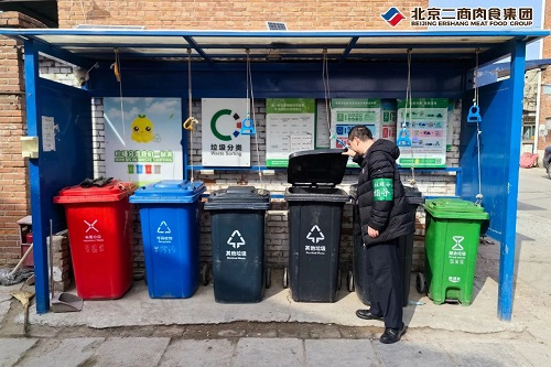 北京二商肉食集团总部职能部室积极参与厂区和社区“桶前值守”工作,宣传垃圾分类知识,提高社区居民对垃圾分类的重视,共同营造干净整洁的社区居住环境。