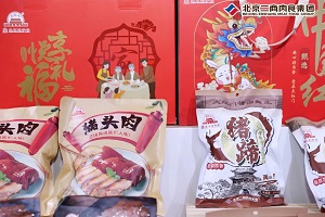 中华老字号“大红门”带来了老北京蒜肠、京味老火腿、老北京熏鸡、酱卤猪头肉等超多经典酱卤系列产品,以及“红门妙膳”农家酥肉、酸菜鱼、猪肚鸡等预制菜系列产品,进一步展示中华老字号“大红门”品牌的创新与活力。