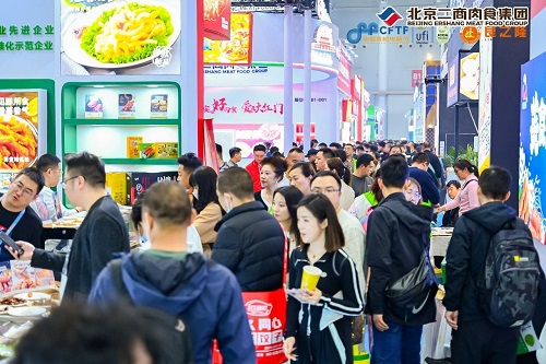 “大红门”作为中华老字号品牌,以其优质的原材料和丰富多样的产品赢得了广大消费者的喜爱。展会现场,大红门展区人头攒动,众多食客纷纷驻足品尝小酥肉、地道烤肠、酱卤风味大肠、蒜香排骨等预制菜肴,其中两款小酥肉和肥肠类产品获得一致好评,观众对产品风味赞不绝口,纷纷对接相关业务负责人,希望加深合作。
