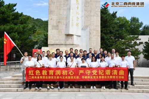 为深入学习贯彻习近平新时代中国特色社会主义思想和党的二十大精神,学习党的历史,重温革命精神,传承红色基因,北京二商肉食集团总部党支部与五肉联党支部、华都阳光党支部联合组织开展“红色教育润初心 严守党纪谱清曲”主题党日活动,共30余名党员、积极分子前往位于北京市延庆区的平北抗日烈士纪念园参观学习。