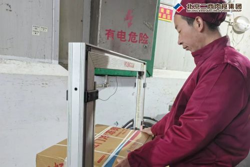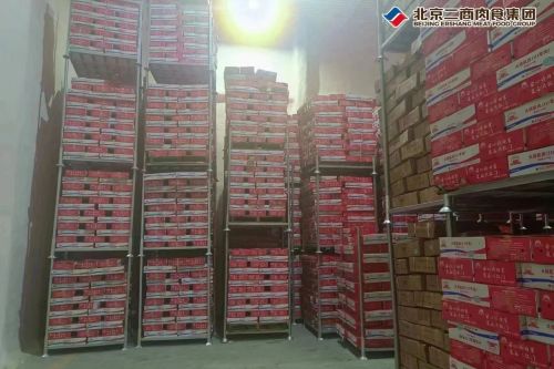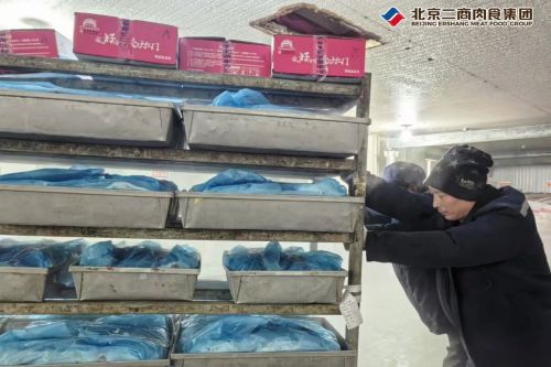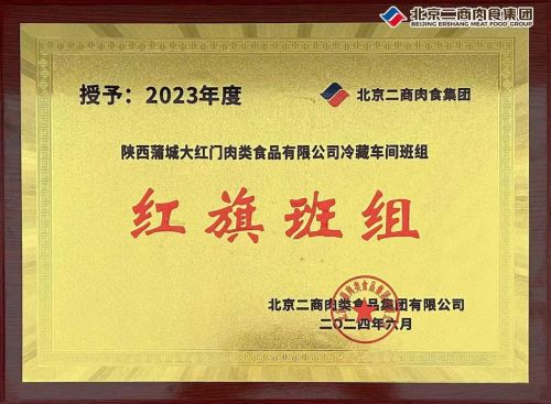 在陕西蒲城大红门肉类食品有限公司冷藏车间,一箱箱货物整齐的排列在货架上,这里是蒲城大红门公司冷藏车间班组的工作现场。冷藏车间班组是一个学习型、技能型、和谐型的先进班组,素以“能打硬仗、善打硬仗、关键时刻能顶得住”的工作作风著称。2023年,蒲城大红门公司冷藏车间班组每日出入库产品约80吨余,人均每日搬运产品6吨以上,为保障企业生产经营工作做出了重要贡献,被北京二商肉食集团评为2023年度“红旗班组”荣誉称号。