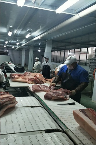 汇龙公司复工之初,18名员工不畏疫情,主动复工上岗。在生产一线员工人手严重不足的情况下,为使生产线能够正常运转,保障市民猪肉产品供应,公司生产负责人谭军桥带头深入一线,跟班生产,与员工并肩作战,每位员工一人肩负多个岗位,从早8点忙到晚9点,既当屠宰工,又当分割工、搬运工,加班加点生产,即使再苦再累从不抱怨。用车间员工的话说:这点苦、这点累不算什么,疫情当前,保障供应是我们肉类加工企业员工应有的责任!
