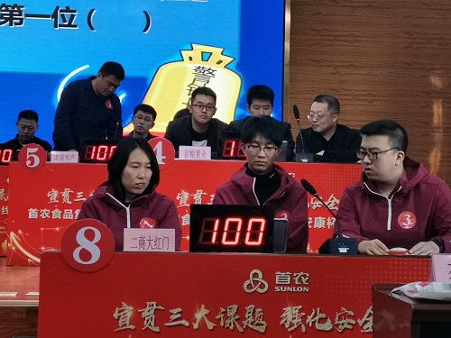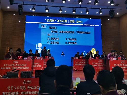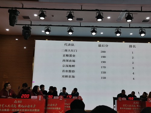 为进一步提高安全生产意识,弘扬 “生命至上、安全第一”的思想,12月5日,首农食品集团举办“安康杯”知识竞赛活动,来自南郊冷冻厂的康莉、李俊锋、邵金鑫三名职工代表二商大红门公司参加比赛。