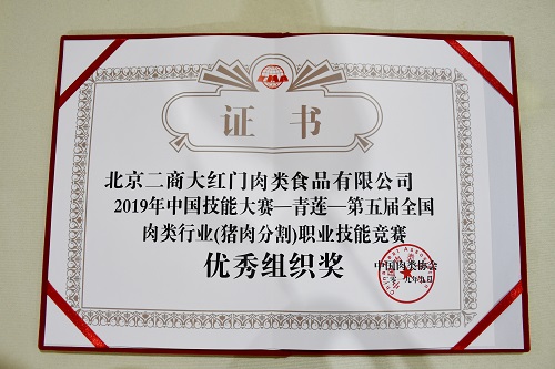 公司在2019年中国技能大赛(猪肉分割)中获得优秀组织奖