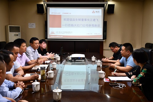 为推动公司“2+5”发展战略快速实现,提升大红门品牌影响力,扩大市场占有率,打造具有核心竞争力的现代化肉类食品强势企业。近日,二商大红门公司邀请谊品生鲜董事长江建飞一行到公司参观座谈,公司常务副经理孙铁新、副经理卢念松;市场开发部经理刘顺成、副经理暴震雷;贸易分公司副经理汪占强等参加座谈。