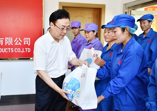 王国丰书记亲切询问了一线职工的工作及生活情况,并亲手为大家送上牛奶、茶叶、毛巾等防暑降温用品,提醒大家,要在保质保量完成生产任务的同时做好防暑降温措施,保重身体。