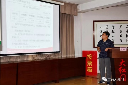 2019年7月8日,二商大红门公司召开“2019半年度工作总结会”,会议简要总结上半年各项经营情况,并就下半年重点工作进行部署,会议由公司经理孙铁新主持,公司领导班子成员、部室负责人、各企业主要负责人、财务负责人参加会议。
