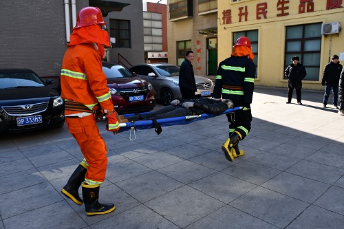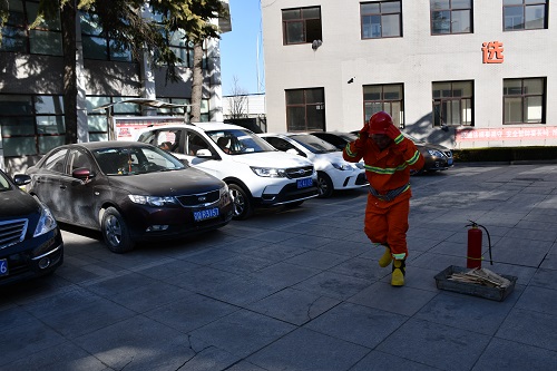 消防实操演练部分:由穿消防服、跨越障碍物、使用灭火器消灭火情、使用担架抢救伤员等环节组成。实操演练环节紧张、刺激,锻炼和考验了选手遇到紧急情况的应变能力、应变速度以及使用灭火设备和救助伤员设备的熟练程度。