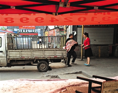 运输 私宰的“注水猪”由货车运至通州区大运河花鸟市场。