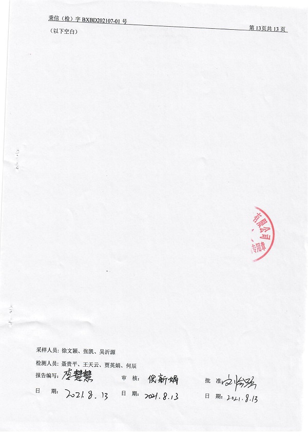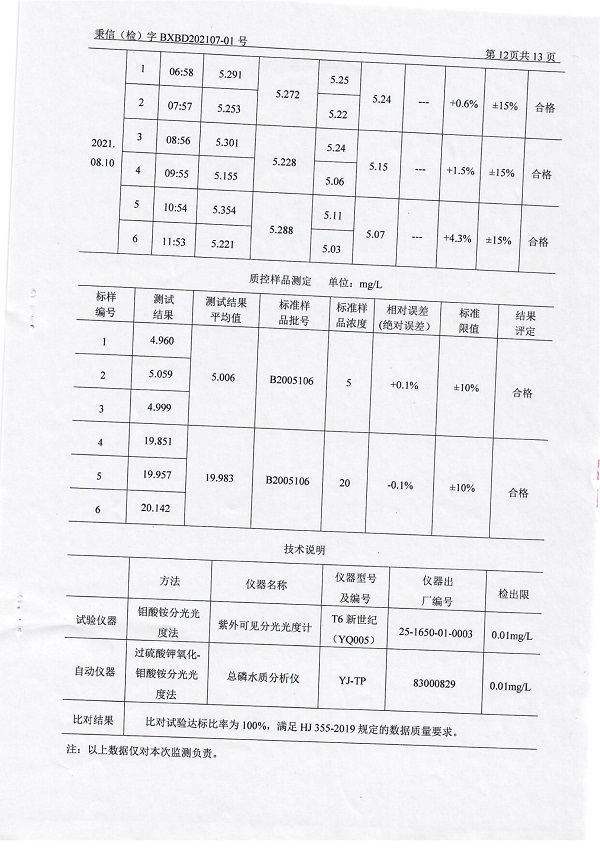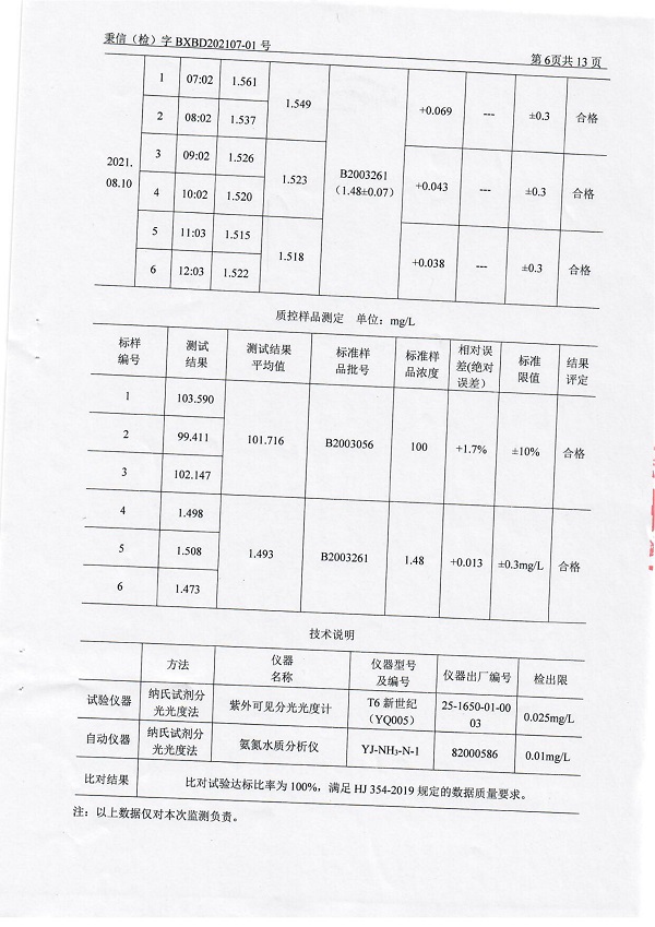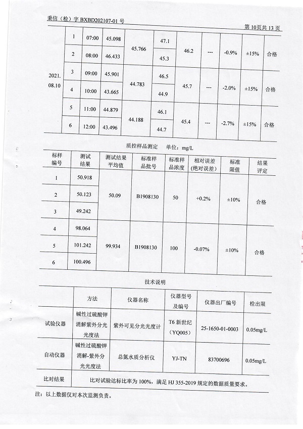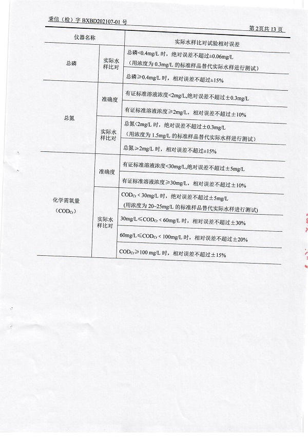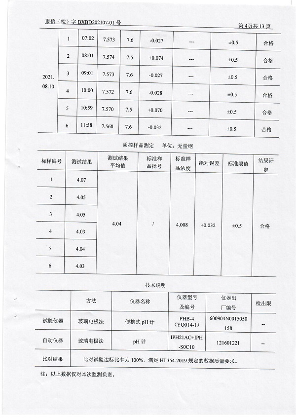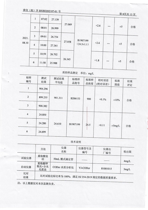 北京华都阳光食品有限责任公司废水污染源自动监测设备对比检测报告