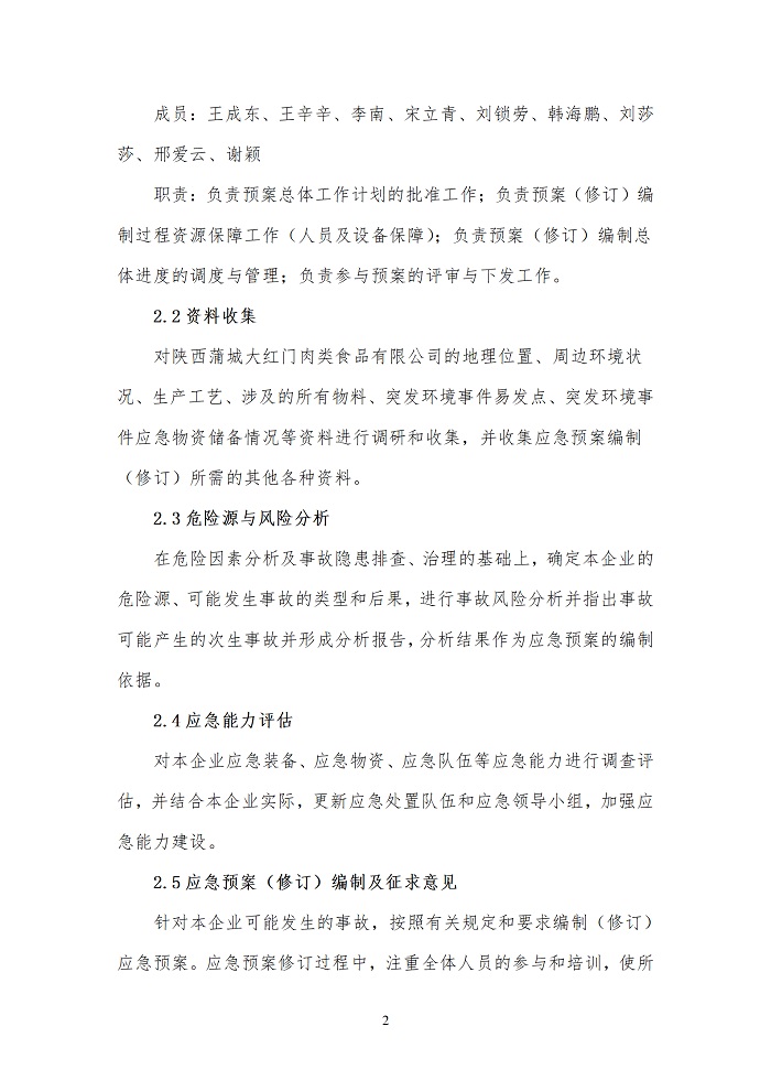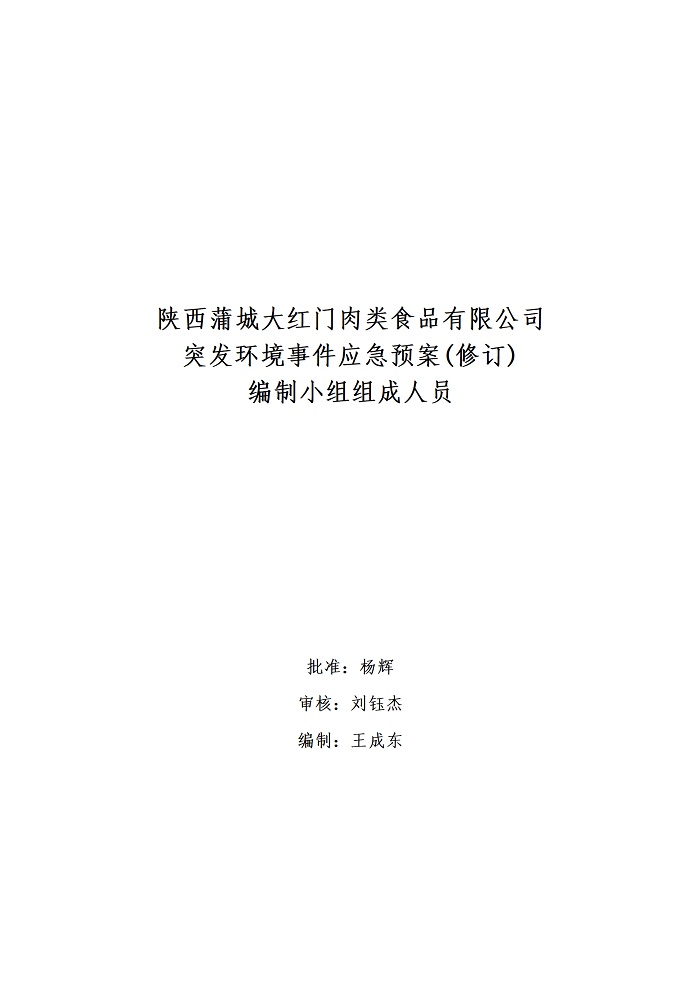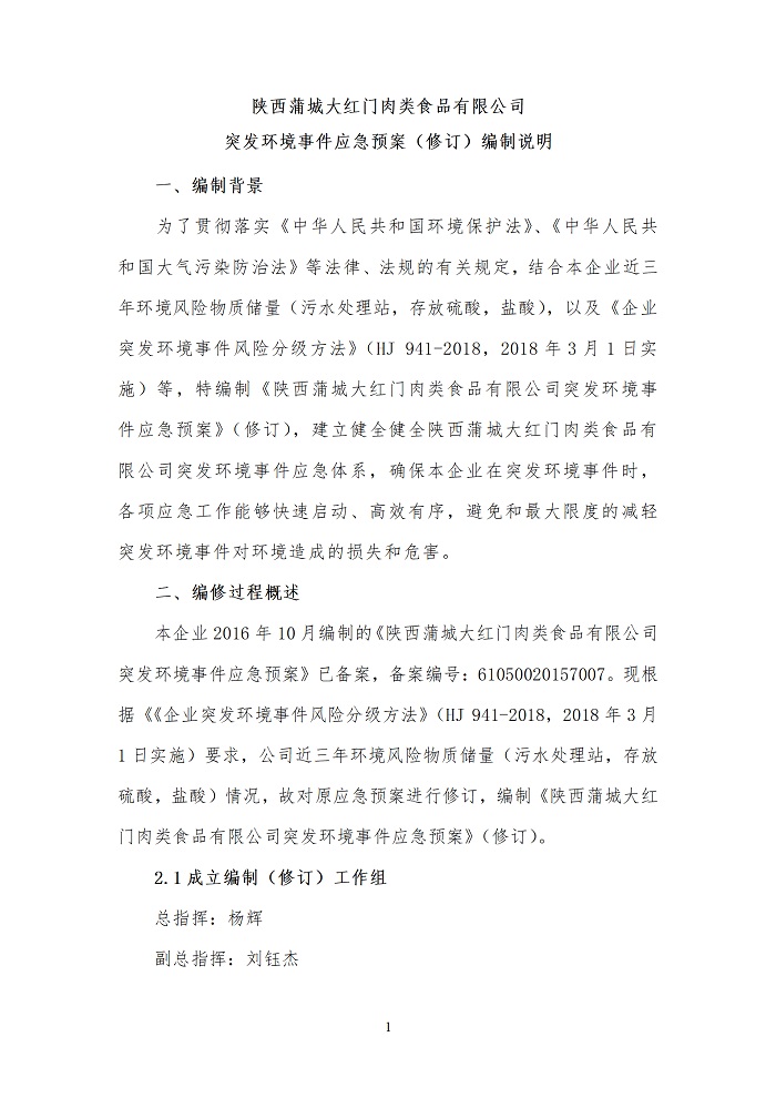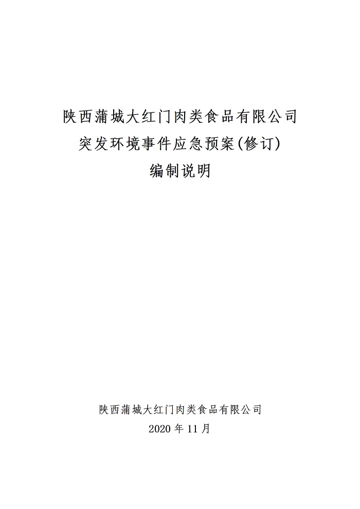陕西蒲城大红门肉类食品有限公司 突发环境事件应急预案(修订) 编制说明