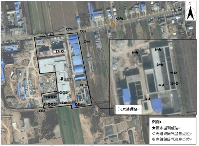 本项目生活污水及生产废水均进入厂区东南角的污水处理站(1800t/d,工艺为格栅+隔油沉淀池+浮渣池+气浮调节池+调节池+ABR厌氧池+一级好氧池+二级好氧池+混凝沉淀池+接触消毒池+总排口)处理后排入市政污水管网。项目设废水在线监测系统,站房位于厂区东南角。2018年6月,在废水总排口重新安装了由山东思睿环境设备科技有限公司的一台SR-COD-02型COD在线监测仪,山东思睿环境设备科技有限公司的一台SR-AN-01型氨氮在线监测仪、SR-TP-01型总磷水质在线自动监测仪,北京环科环保技术公司的一台HBTN-1型在线总氮分析仪。COD、氨氮在线设施已于2018年7月通过环保竣工验收(华信验字〔2018〕第06001号),总磷、总氮在线设备已于2018年8月通过环保竣工验收(华信验字〔2018〕第07010号)。